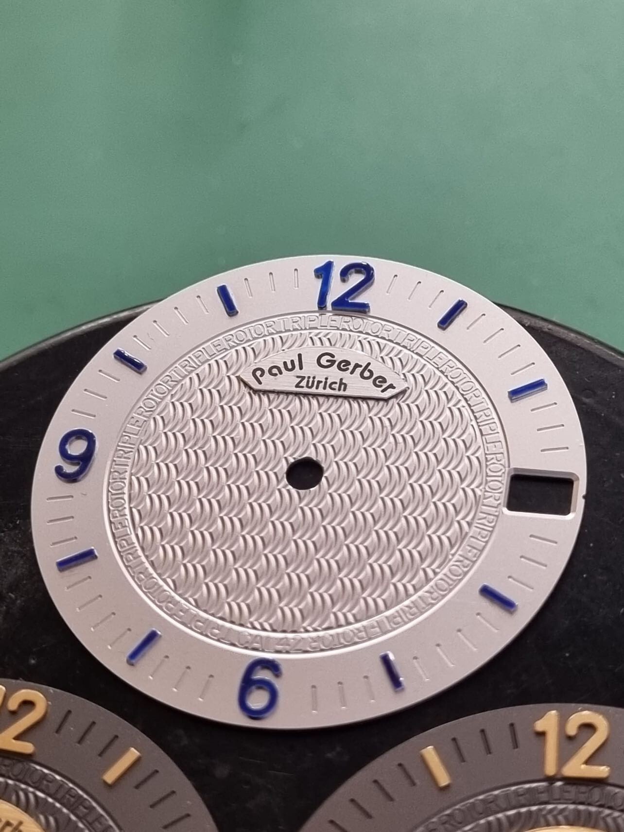 Dieses Modell hat die grösstmögliche Datumsanzeige, Paul Gerber’s bewährten automatischen Aufzug durch 3-synchronlaufende Goldrotoren, und dank 2 Federhäusern eine Gangreserve von bis zu 100 Stunden.